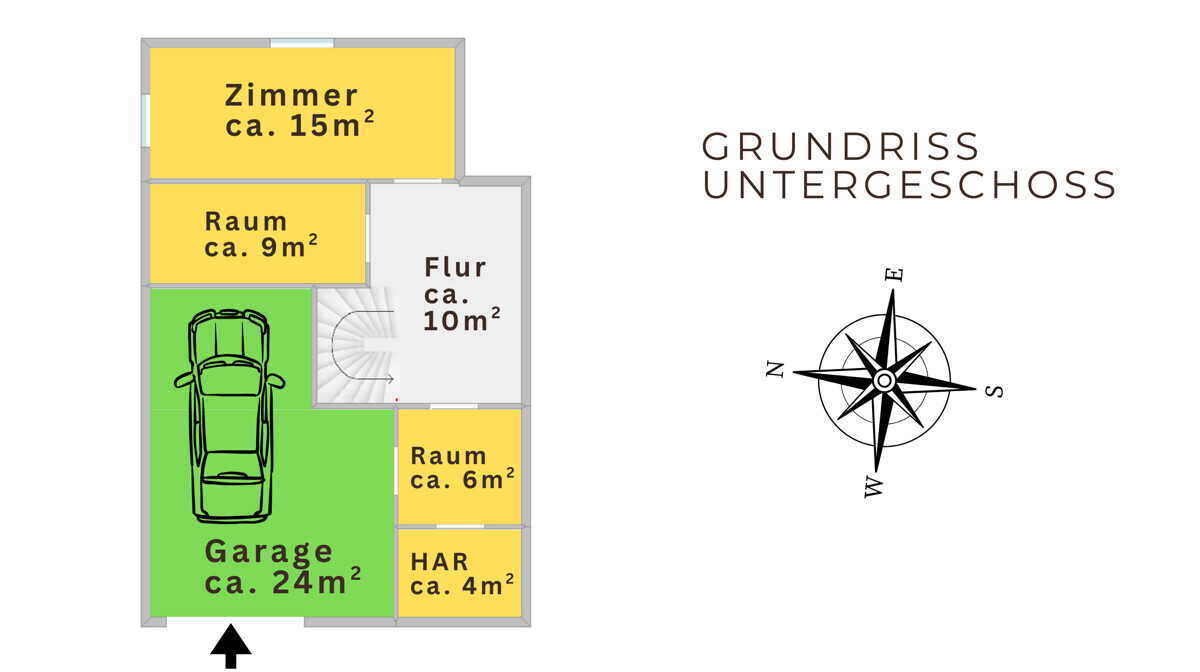 - 4-Räume incl. Ausbaupotential für Apartment/Arbeiten/Homeoffice möglich, Garage, Pkw-Stellplatz. Barrierefreier Zugang ins Souterrain.